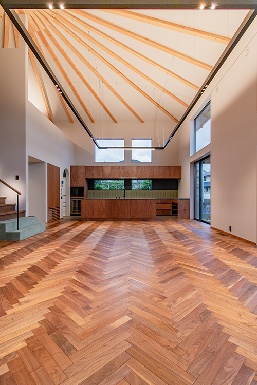 余白のある小屋 敷地面積 305.29m² (92.35坪) 延床面積 150.29m² (45.46坪) 1階床面積 98.75m² (29.87坪) 2階床面積 51.54m² (15.59坪) Photo Gallery
